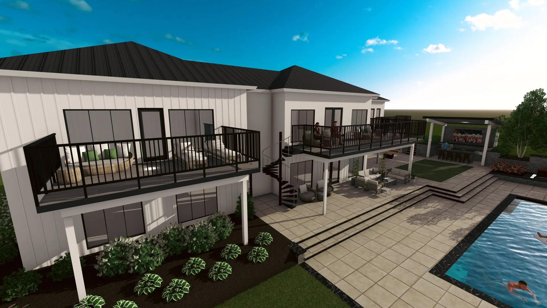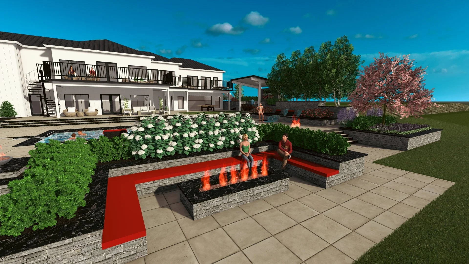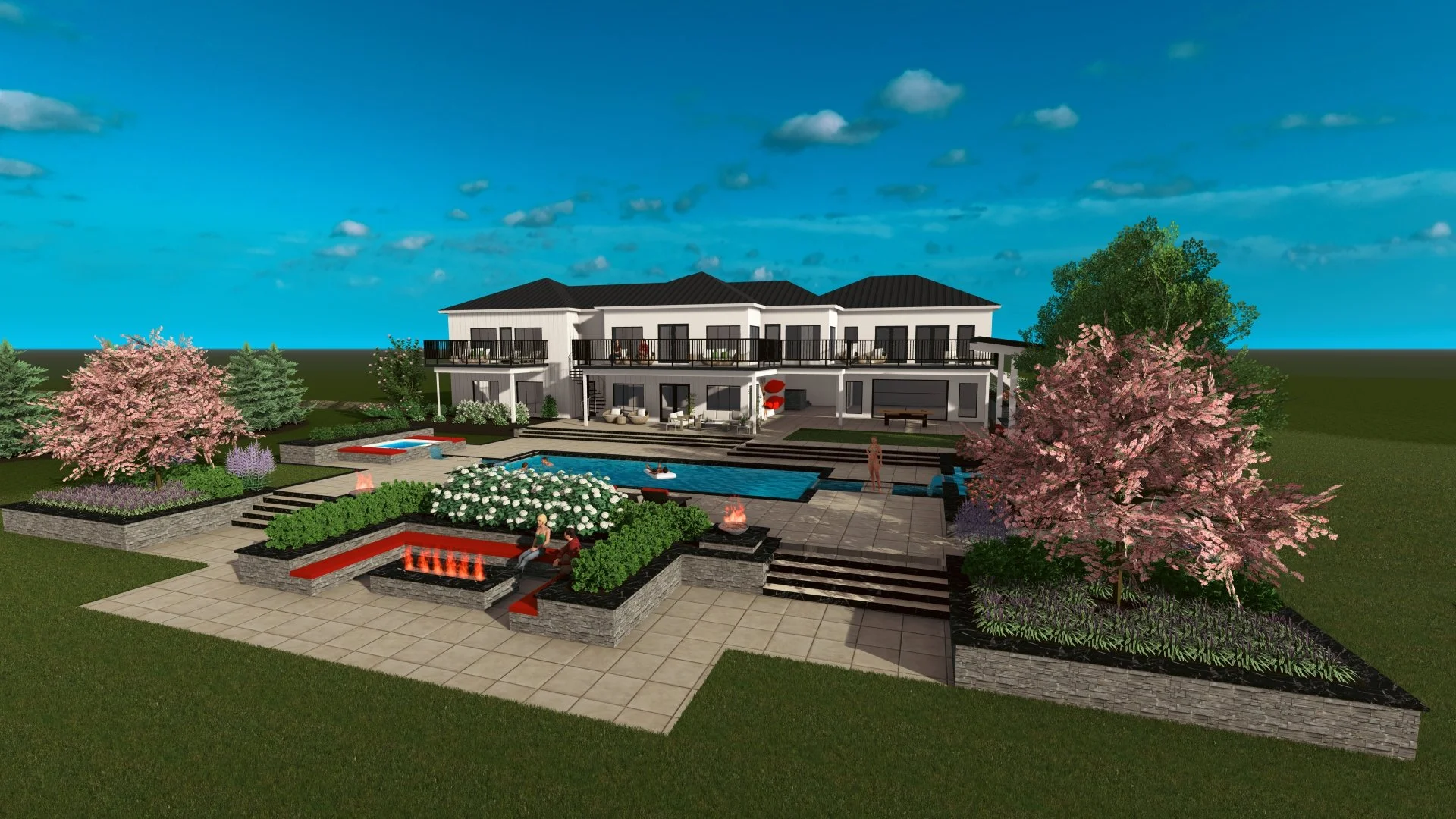 Ultimate ParadiseA luxurious backyard paradise with a tranquil pool, inviting outdoor bar, relaxing hot tub, and multiple fire pits, perfect for entertaining and unwinding in style